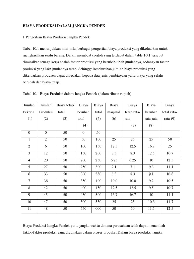 Biaya Produksi Dalam Jangka Pendek Dan Jangka Panjang