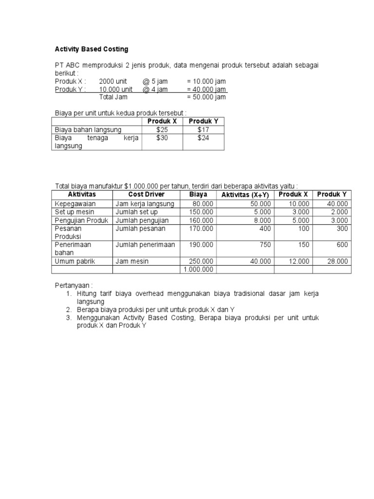 Contoh Soal Activity Based Costing Dan Jawabannya Bali Teacher