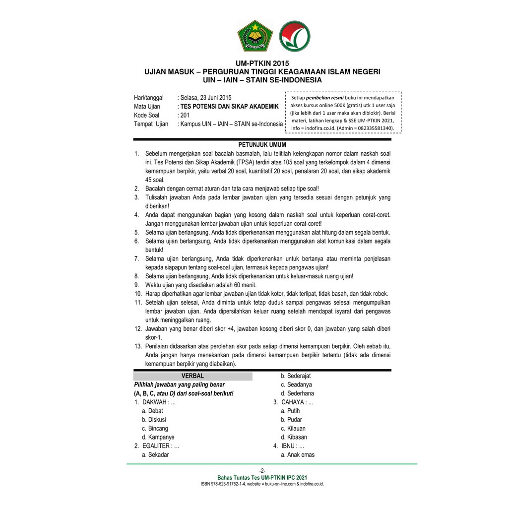 Soal um ptkin 2019 kemampuan dasar pdf. T ersedia Buku UM PTKIN IPS Buku UM PTKIN IPA dan Buku UM PTKIN IPC yang menyesuaikan dengan jurusan yang akan diambil. 4 responses to soal um ptkin 2018 2019 2020 hana roha april 10 2020 at 8 43 am.